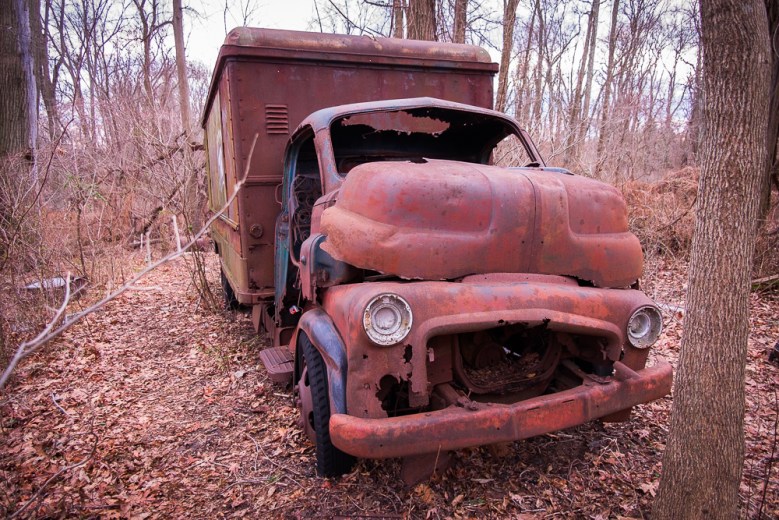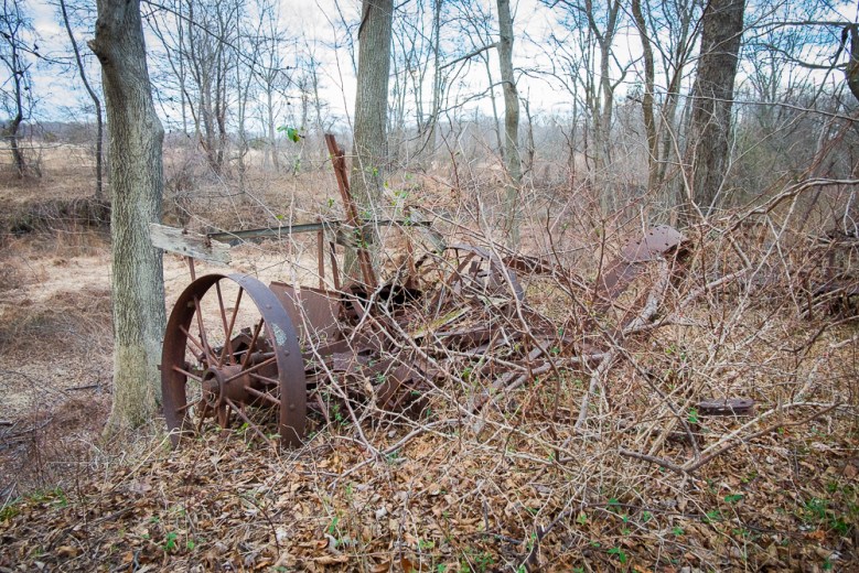 On my ride through Marlboro last week on my favorite rail trail, the Marlboro-Freehold section (Freehold Branch) of the Henry Hudson Trail, also known as the Monmouth Heritage Trail, I saw lots of hard evidence of Marlboro’s farming past. I happened upon a graveyard of old farming equipment virtually untouched since it was left to rust. To be sure, there has been some cannibalizing for parts over the years but you can tell the objects have otherwise sat exactly where they were left. They’re usually hidden by thick woods and overgrowthโI’ve never happened to see them before, only an old van which is visible from the trailโbut the bare trees of winter leave them all visible.